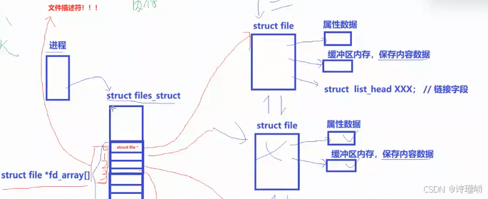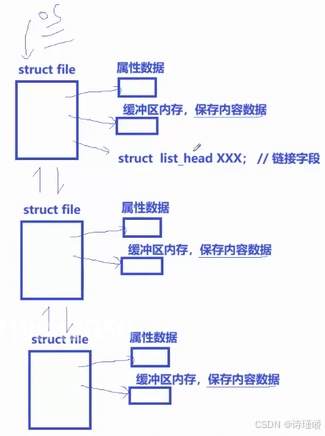 文件被分为属性和内容,当你要访问磁盘时本质是将文件加载到内存中。那么打开文件的本质就是预加载文件,而一个进程可以打开多个文件,同时操作系统内部需要对多个文件进行管理。再通过下述图片的链接,操作系统对被打开的文件进行建模,转换为对链表的增删查改。