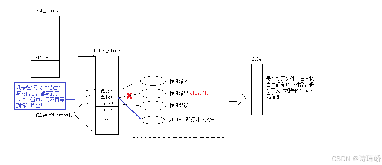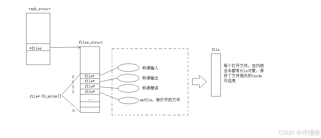 文件描述符表的数组下标指向文件的数据,通过文件描述符可以对文件进行管理。