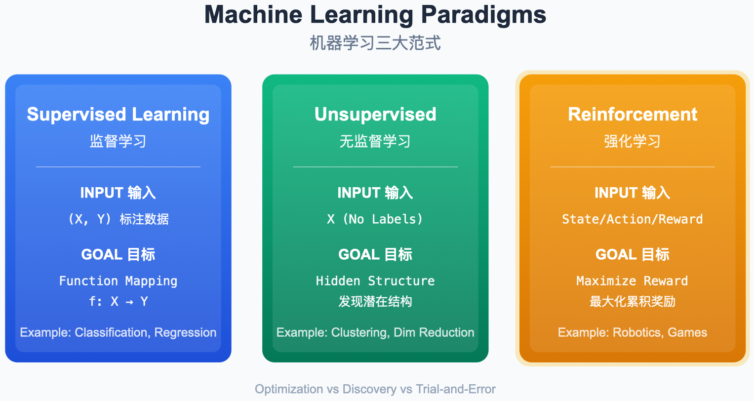 强化学习 (Reinforcement Learning) 是机器学习的第三范式,关注智能体 (Agent) 如何在环境 (Environment) 中通过试错 (Trial-and-Error) 来最大化累积奖励。