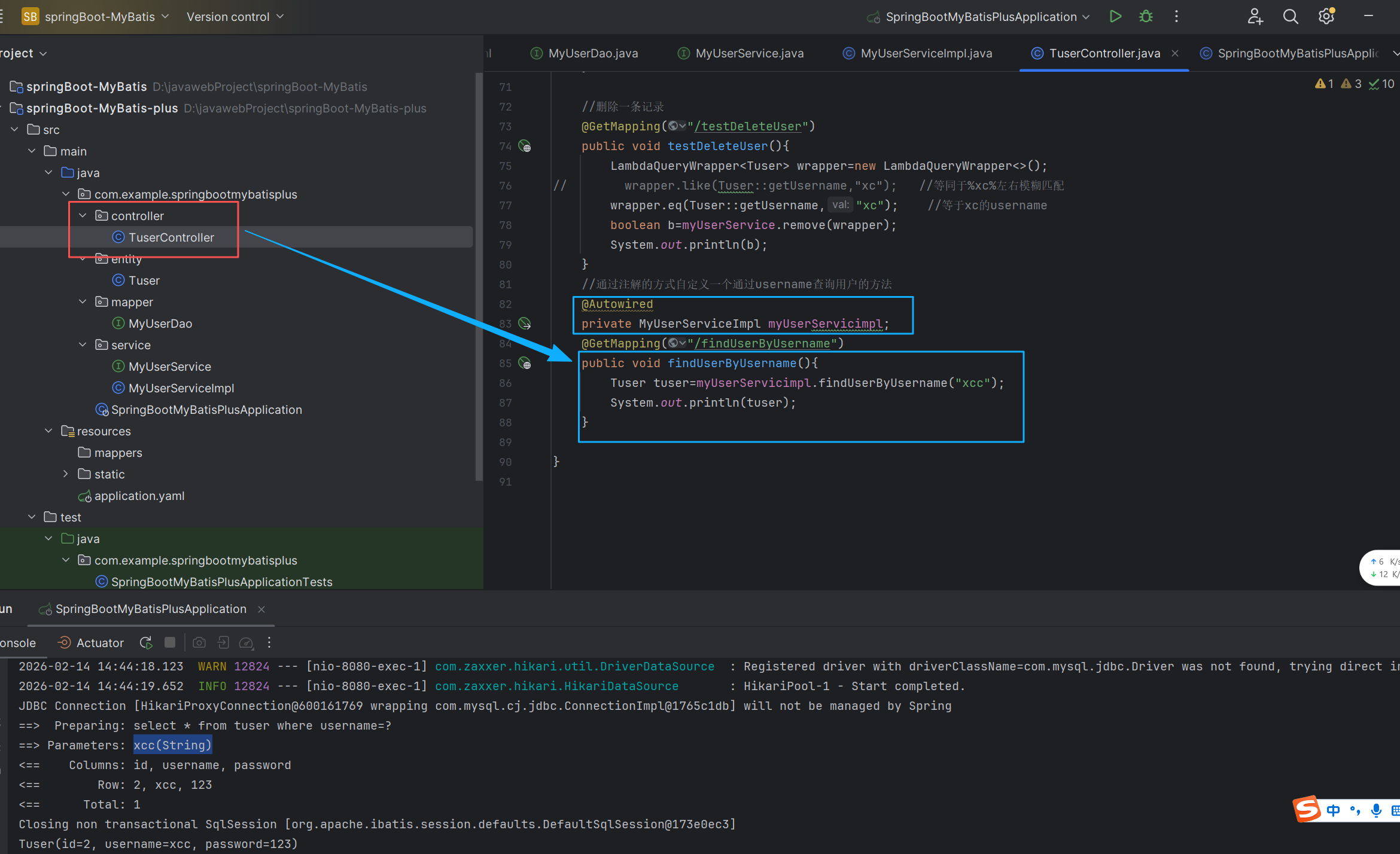 (案例)我们希望添加一个查询功能,自定义一个方法根据username去查询记录。
