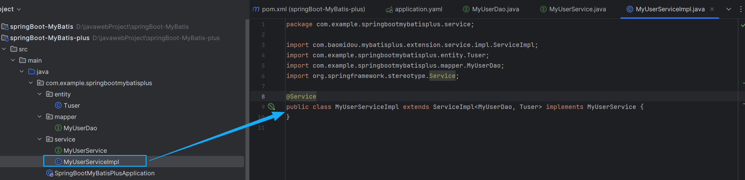 public class MyUserServiceImpl extends ServiceImpl<MyUserDao, Tuser> implements MyUserService {