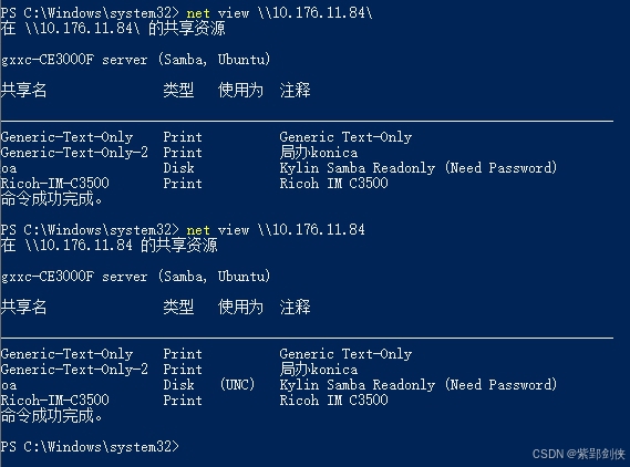 PS C:\Windows\system32> ++net view \\10.176.11.84++