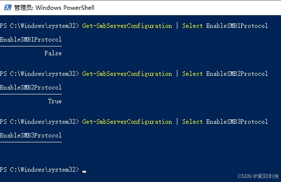 PS C:\Windows\system32> ++Get-SmbServerConfiguration | Select EnableSMB3Protocol++