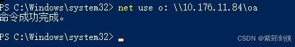 PS C:\Windows\system32> ++net use o: \\10.176.11.84\oa++