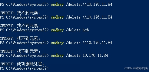 PS C:\Windows\system32> ++cmdkey /delete hzb++
