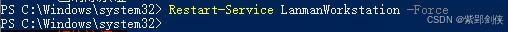 PS C:\Windows\system32> R++estart-Service LanmanWorkstation -Force++