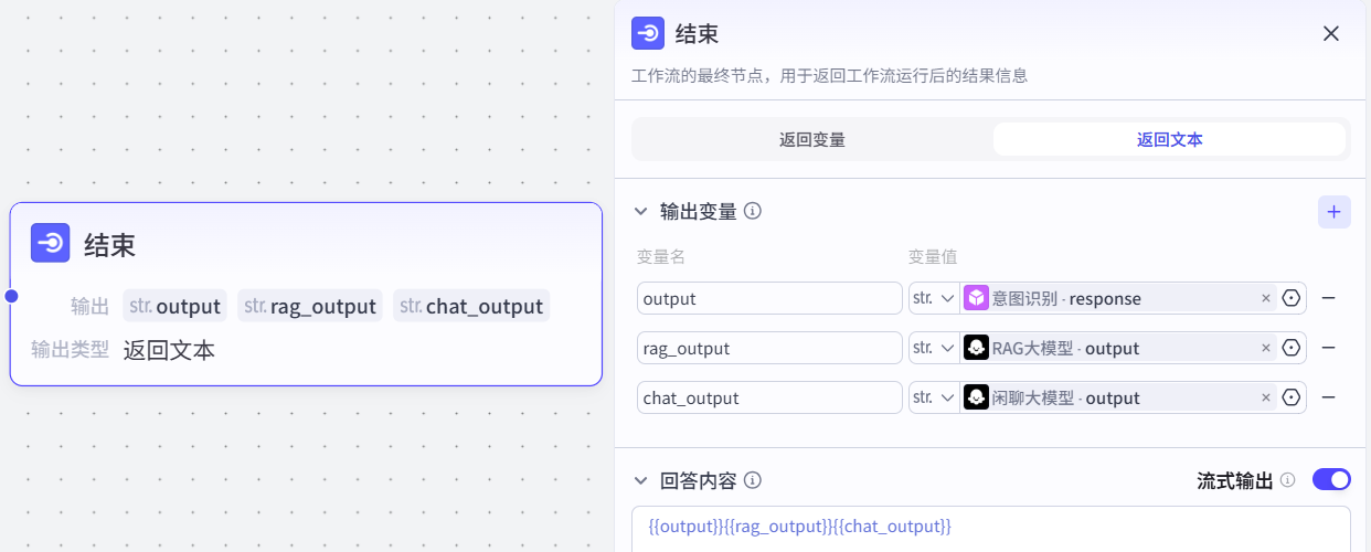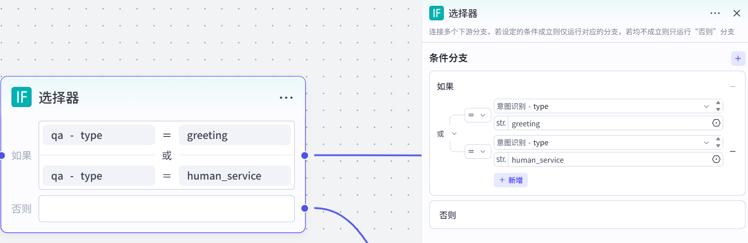 properties主要三种选择:打招呼(greeting);找人工(human);RAG检索(rag) -