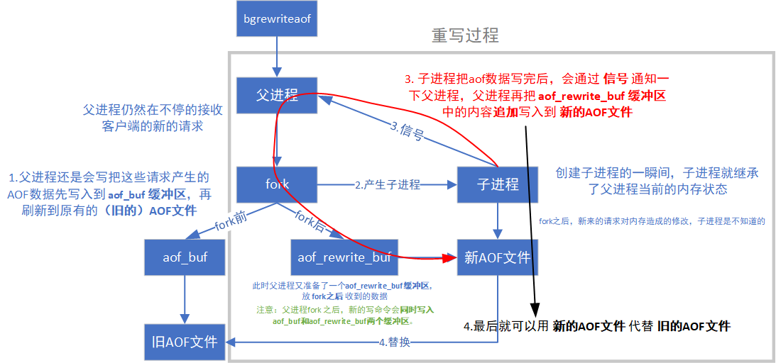 问题:最后新的AOF文件要替代旧的AOF文件,那父进程在fork后继续写旧的AOF文件是否还有意义?