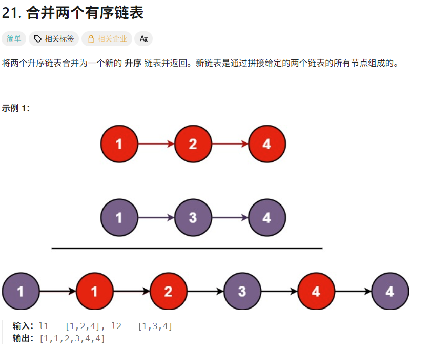 利用两个指针,分别指向list1和list2的节点,然后继续比较,将两者之中较小的接到后面,然后移动指针,直到两条链都被遍历完。