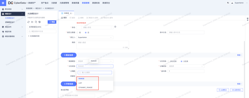 **· Doris 数据源建模支持:**新增 Doris 类型数据源建模能力,支持表或视图建模,可在建模过程中灵活配置主键表、聚合表、明细表,同时支持动态分区、范围分区、列值分区等多种分区策略,适配不同业务场景的数据存储需求(如截图所示,建模界面提供完整的分区与表类型配置选项)。