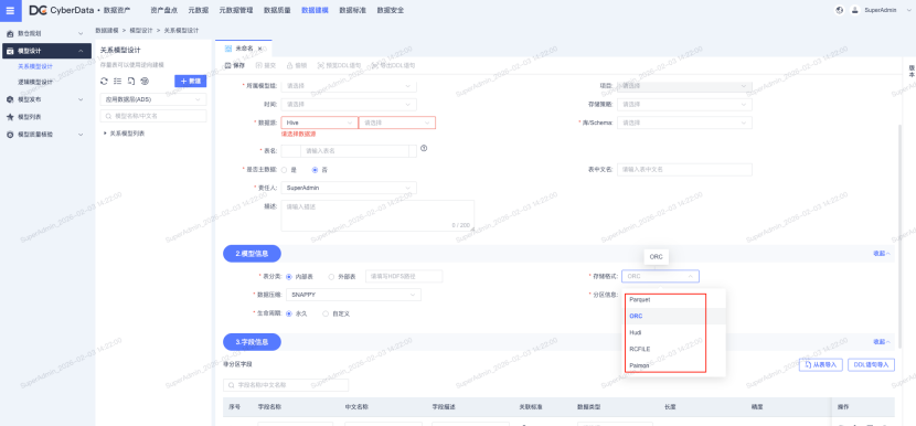 **· Hive 建模能力升级:**完善 Hive 数据源建模功能,支持表/视图建模的同时,新增 paimon、hudi 湖格式建模支持,兼容 Parquet、ORC、RCFILE 等经典存储格式,满足湖仓一体架构下的多样化数据存储需求。