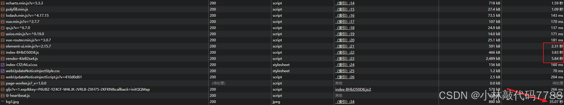 vendor.js(第三方库打包文件)体积高达 2.5 MB。 - 耗时 :由于服务器带宽有限,该文件加载耗时 7.12 秒。