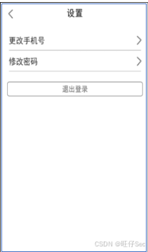 5.设置界面下方显示更改手机号入口、修改密码入口和"退出登录"按钮;点击修改密码入口,进入修改密码界面,需要具有页面向左滑动的效果。