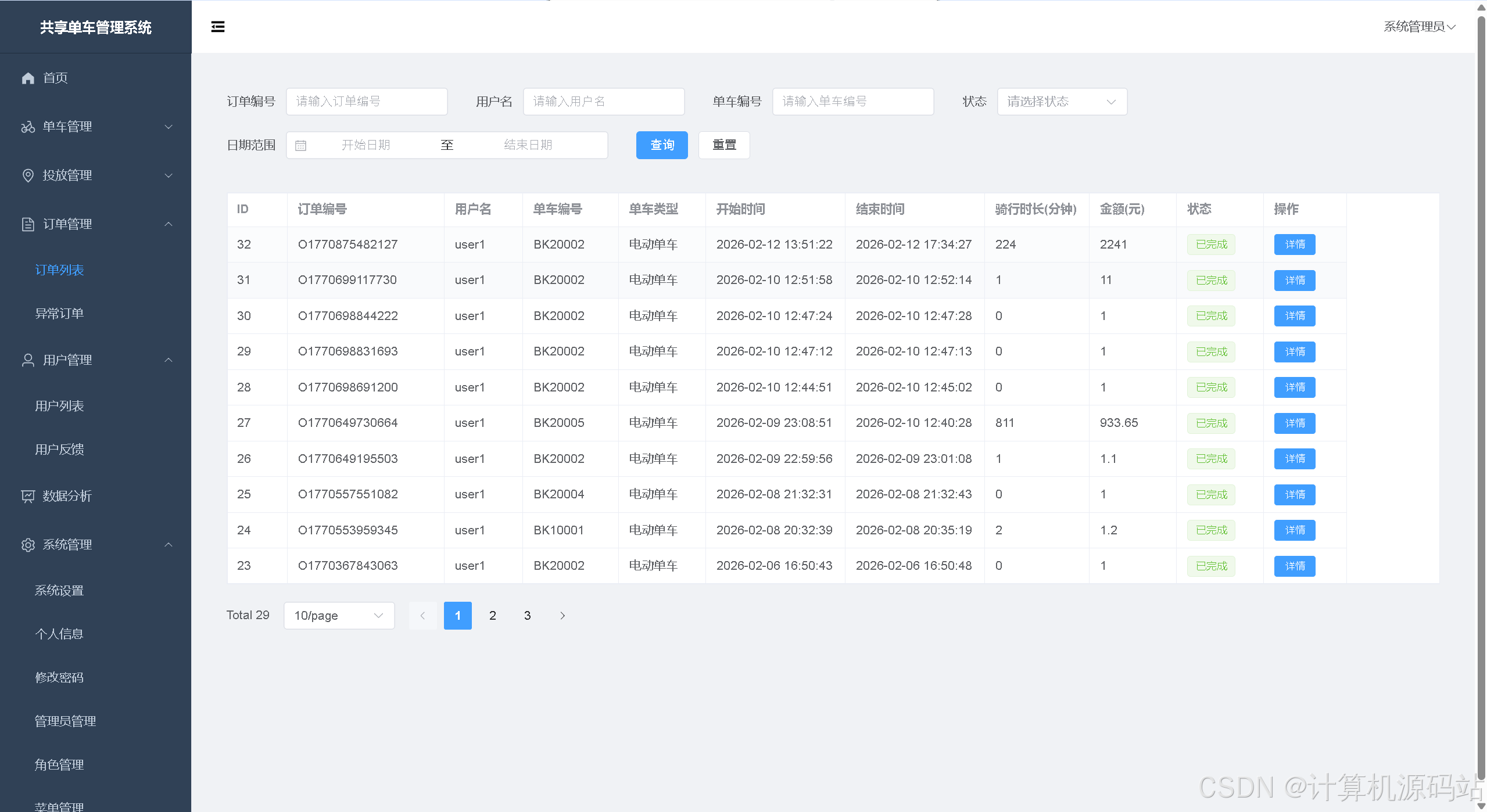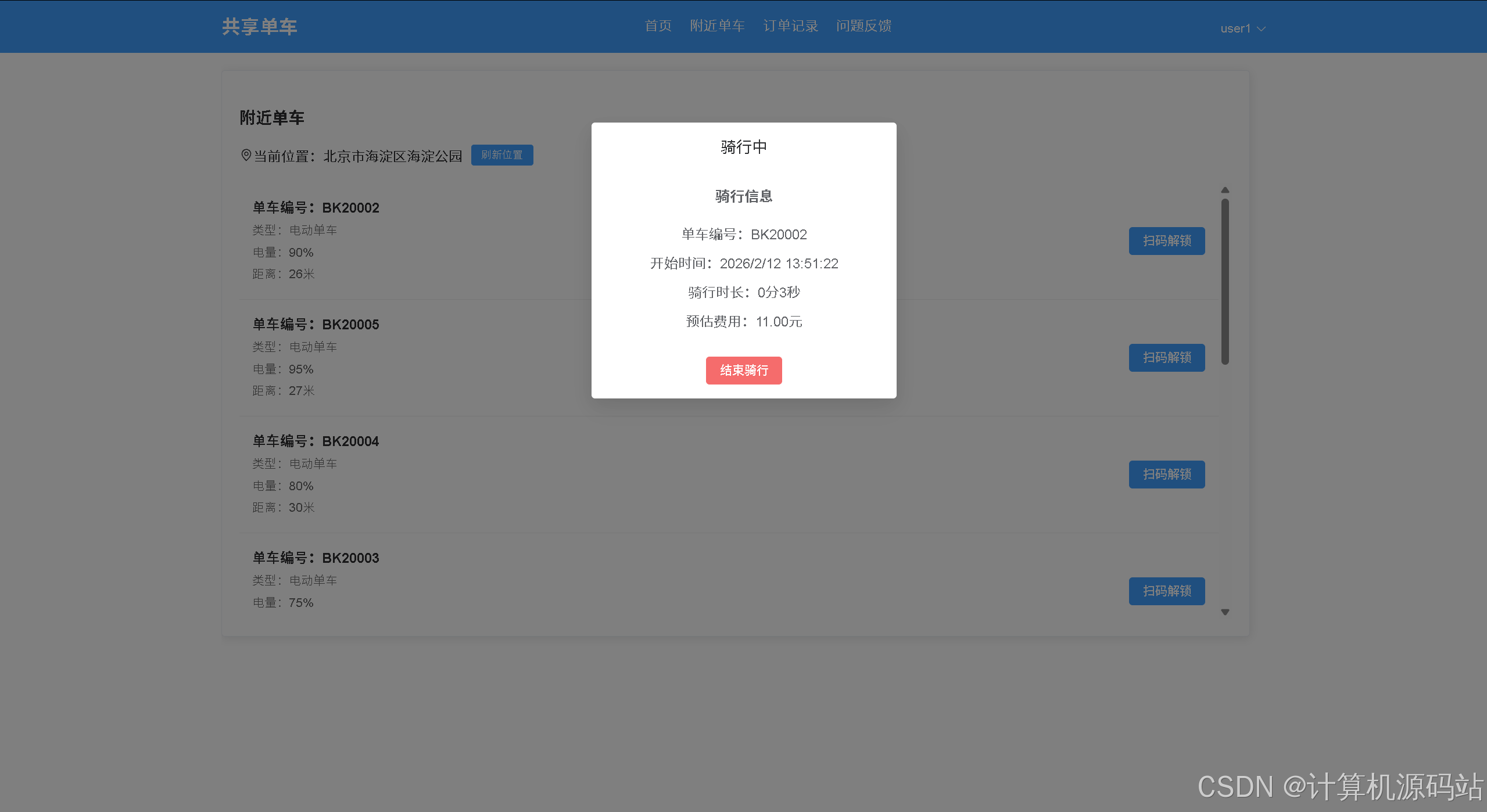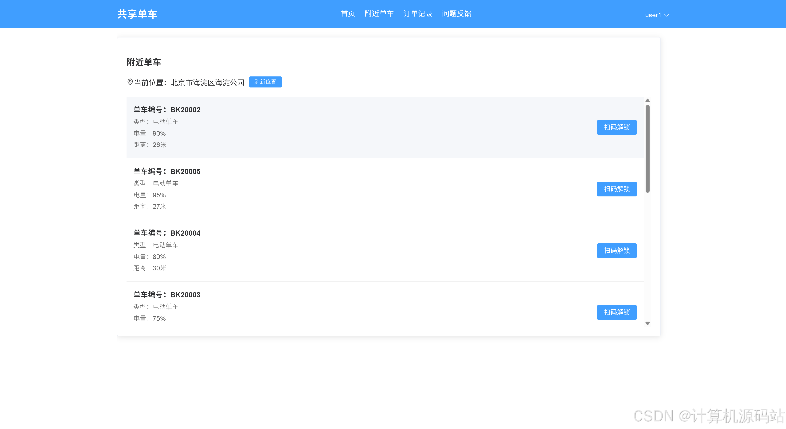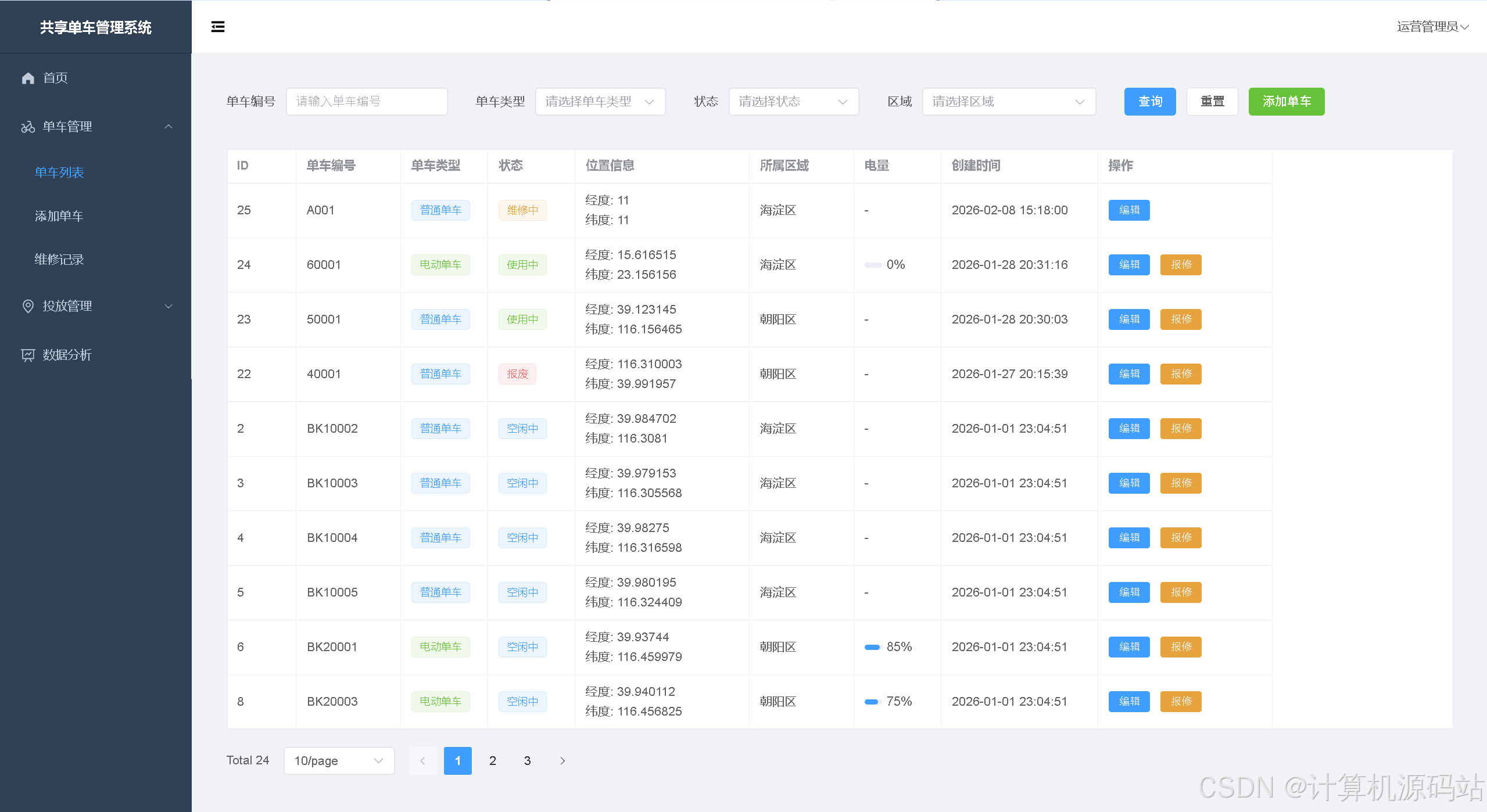 基于Springboot+Vue3的共享单车管理系统(源代码+数据库)