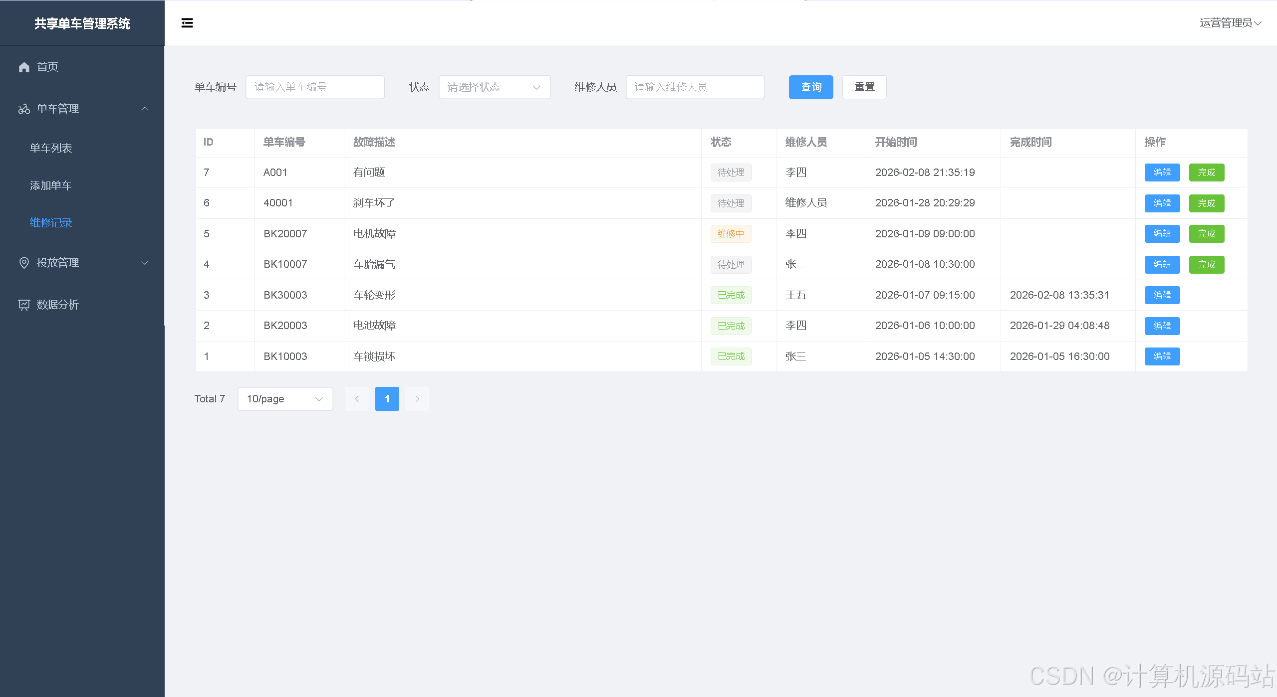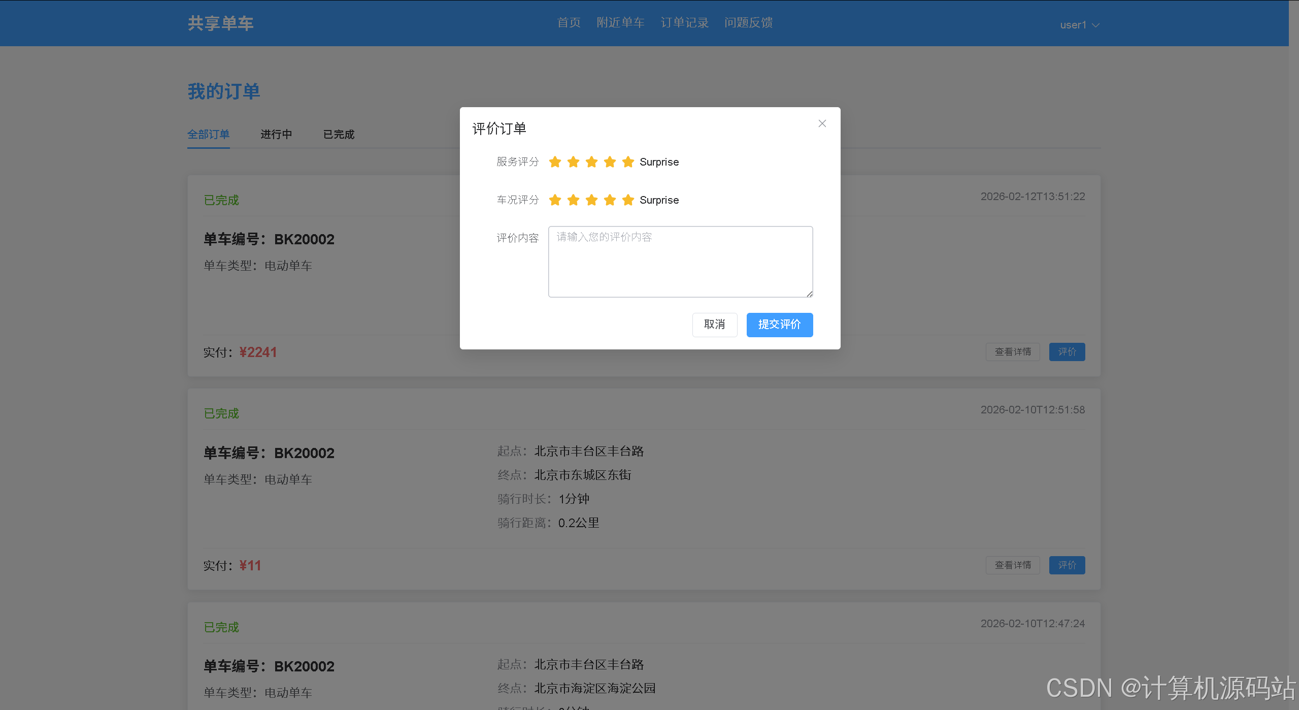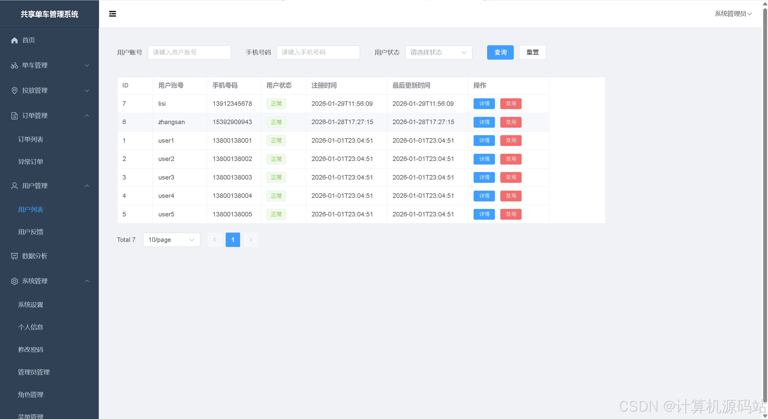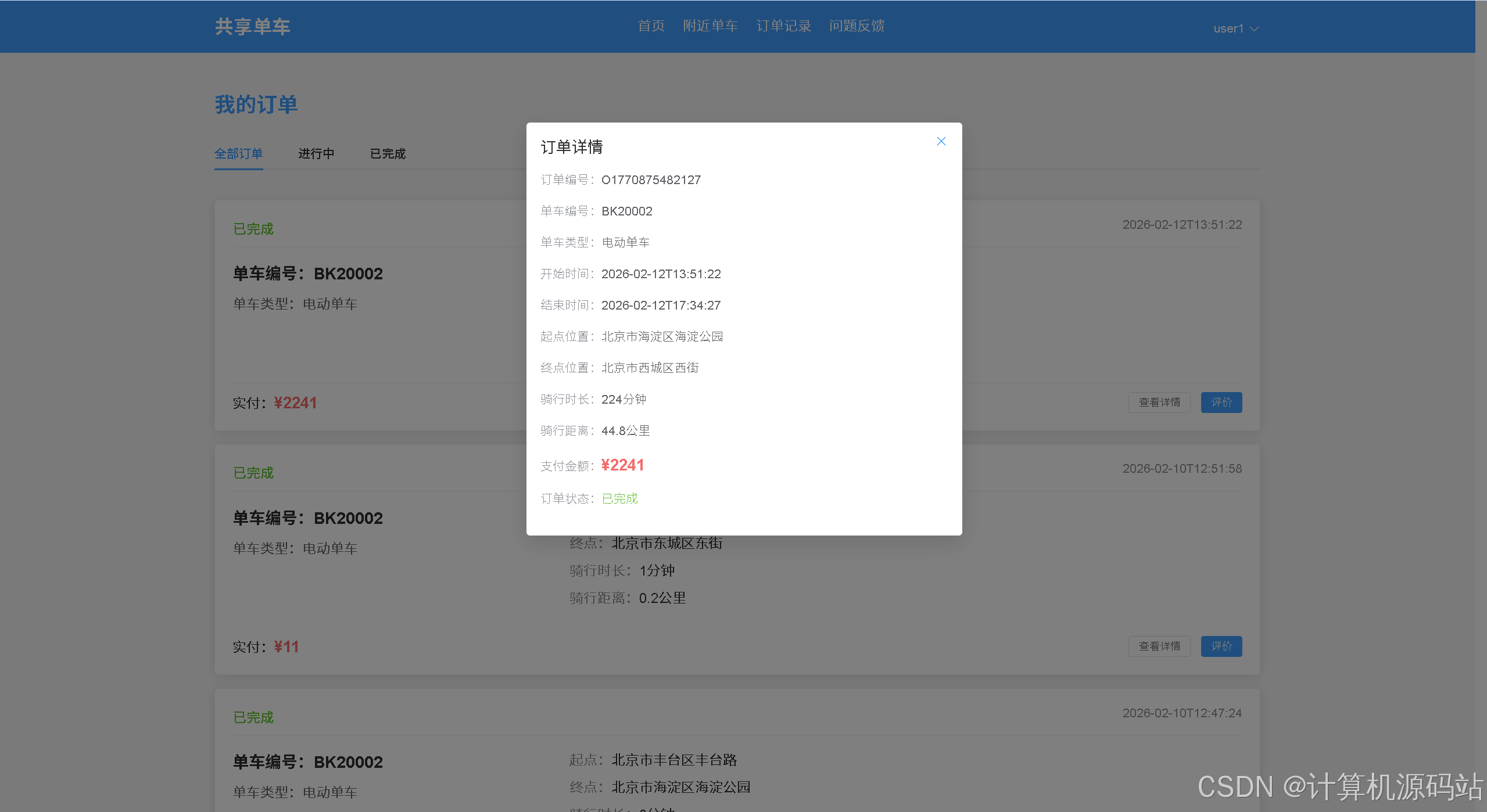 基于Springboot+Vue3的共享单车管理系统(源代码+数据库)