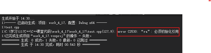 引用在定义时必须初始化