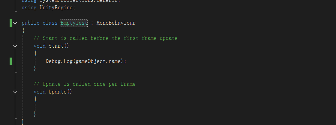 47、直接通过gameObject获取当前脚本所挂载的游戏物体名字。