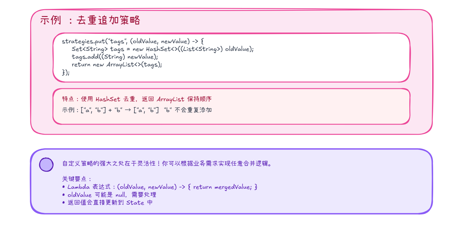 strategies.put("result", new AppendStrategy()); // result 应该用 ReplaceStrategy