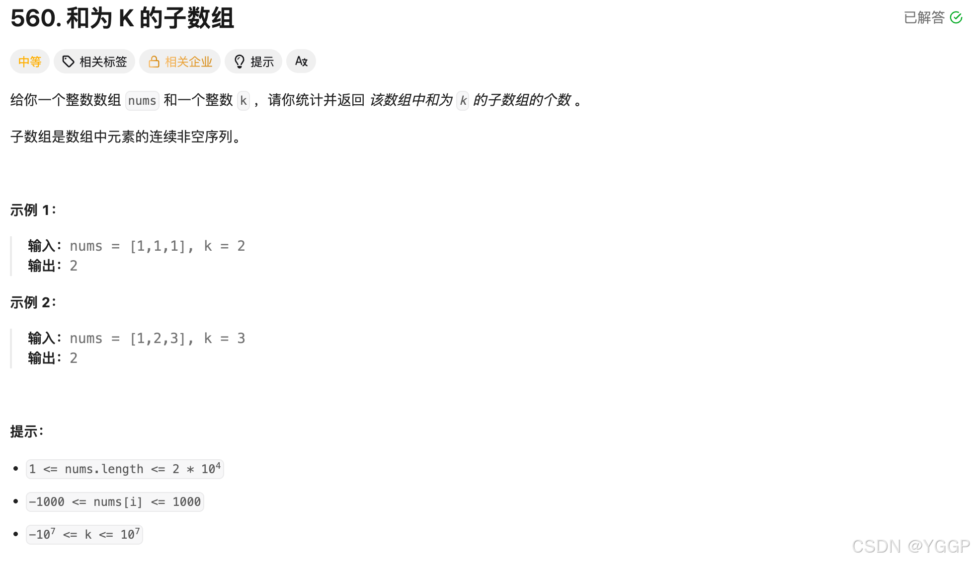 560. 和为 K 的子数组