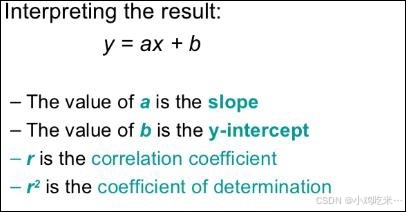 线性回归公式的可视化图形表示为y=ax+b,横轴为X。