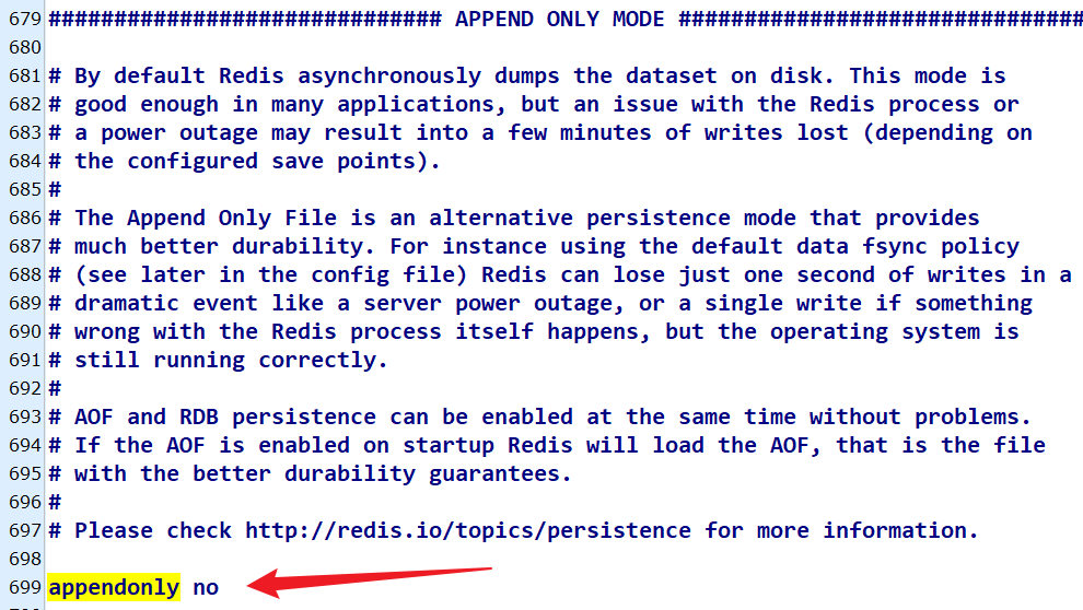配置 appendonly yes(默认值为 no,需手动修改开启)