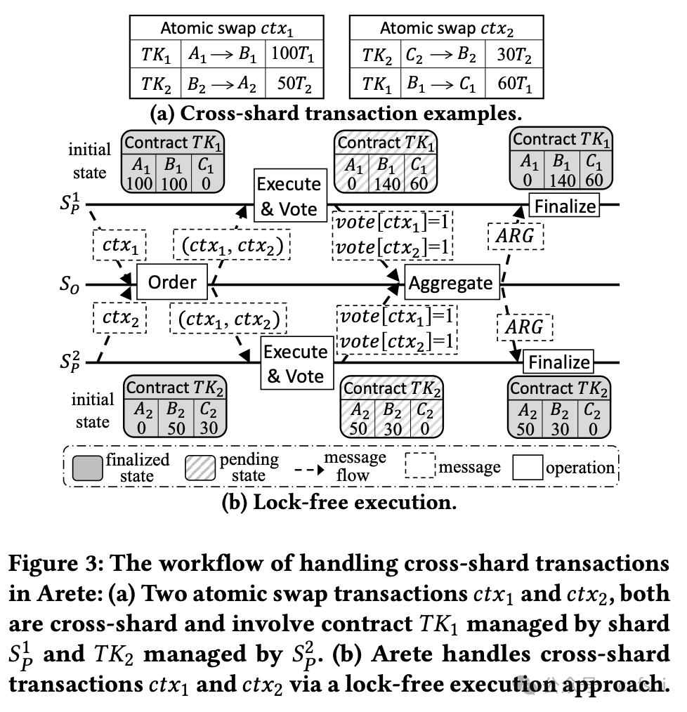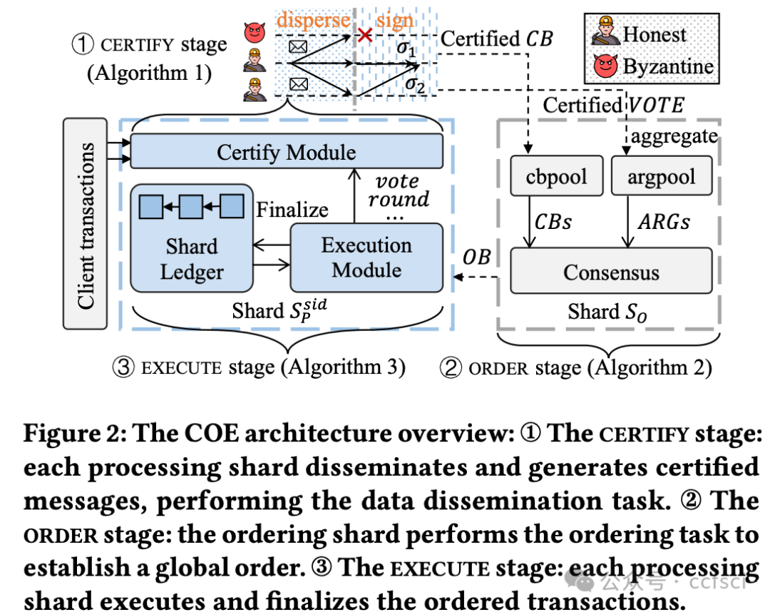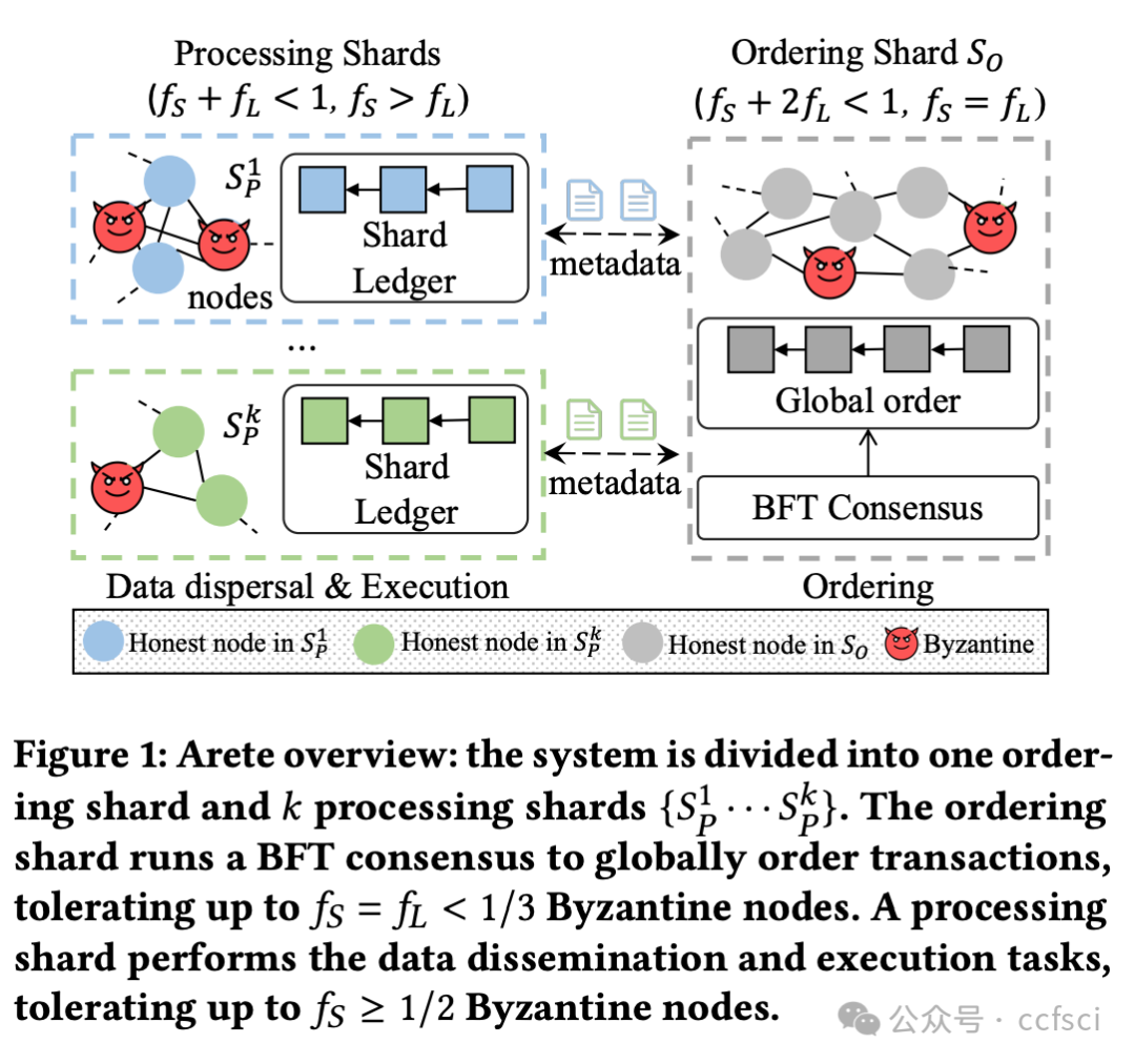 分片通过将节点划分为多个分片来并行处理交易,从而增强区块链的可扩展性。然而,由于每个分片必须足够大才能确保其安全性,因此存在一个"规模-安全"两难困境,这限制了单个分片的有效性和分片的程度。因此,大多数现有解决方案依赖于削弱攻击者或做出更强的网络假设。本文提出了一种名为 Arete 的区块链分片协议,该协议旨在解决上述两难困境。其设计基于以下观察:如果单个分片能够容忍更高比例的拜占庭故障,我们就可以安全地创建更多更小的分片。因此,Arete 的核心思想是通过拆分区块链的状态机复制 (SMR) 过程来提高分片的安全弹性。与现代区块链类似,Arete 首先将 SMR 解耦为三个步骤:交易分发、排序和执行。然而,对于 Arete 而言,单个排序分片负责执行排序任务,而多个处理分片则负责区块的分发和执行。由于处理分片不进行共识,因此每个分片最多可以容忍一半的节点被攻破。此外,排序分片中的 SMR 进程极其轻量级,因为它仅操作区块摘要。其次,Arete 将安全性和活性分别考虑,以应对拜占庭故障,从而进一步提高安全阈值,同时以可控的方式容忍临时活性违规。除了创建更优化大小的分片之外,这种解构式的 SMR 方案还使我们能够设计一种新颖的认证-排序-执行架构,从而实现事务处理的完全并行化,并显著提高性能。我们在 AWS 环境中实现了 Arete,并在最多 500 个节点上运行对其进行了评估。结果表明,Arete 在可扩展性、吞吐量和跨分片延迟方面优于典型的分片协议,且不会影响分片内延迟。