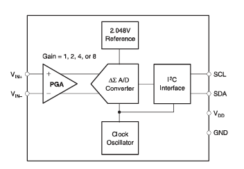 * @note 内部基准为2.048V,满量程差分输入范围 = ±2.048 / PGA
