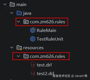 这里的规则文件分不同的包存放,需要注意的是,规则块定义的name在不同的包下可以重复,但在同一个包下name唯一,不管是否在同一个文件或者不同文件中定义。 这里规则做了简化: com/zm626/rules/test1/test.drl