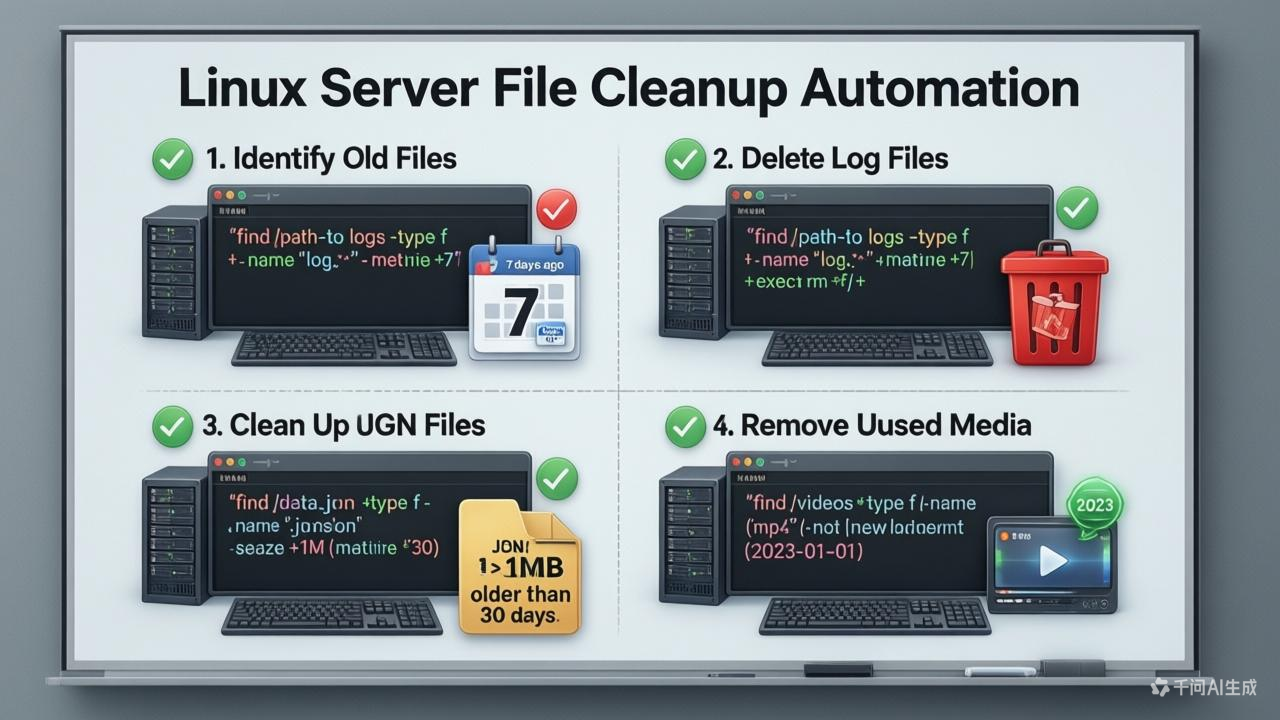 Linux 系统提供了强大的文件查找工具 find,它不仅能定位文件,还能直接执行删除操作。下面介绍两条高效、安全的清理命令。