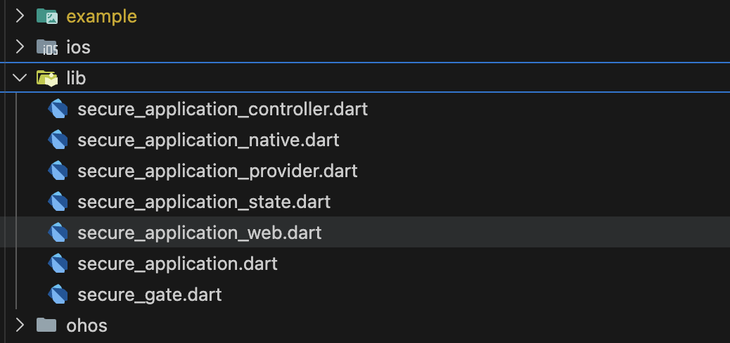 用户只需要 import 'package:secure_application/secure_application.dart' 就能使用所有功能。