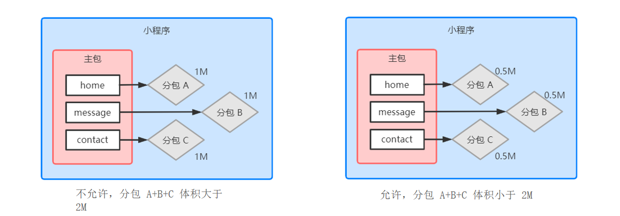 目前,小程序分包的大小有以下两个限制: