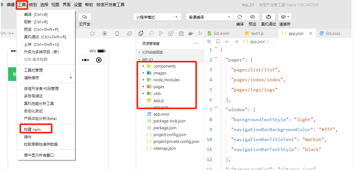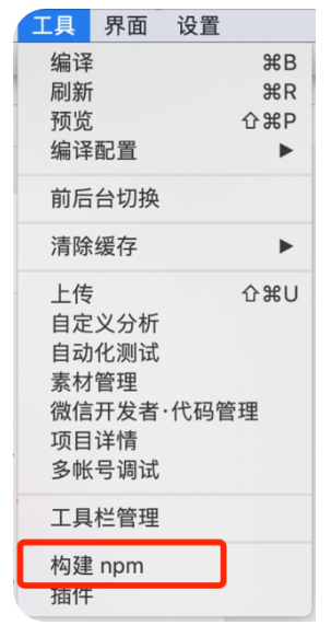 安装好后,就可以开始构建npm包了,找到菜单栏里的"工具",点击"构建npm"