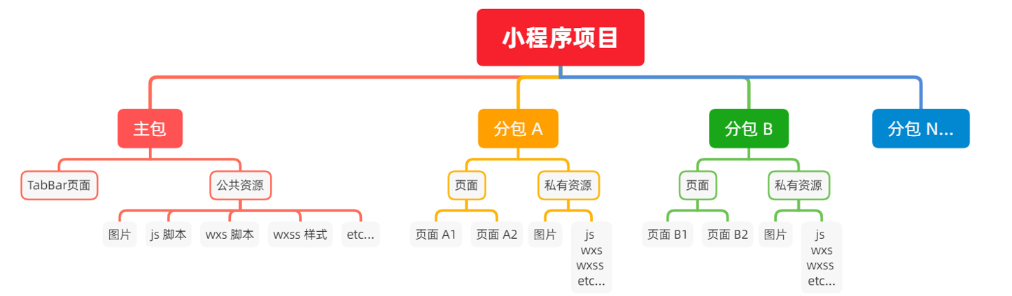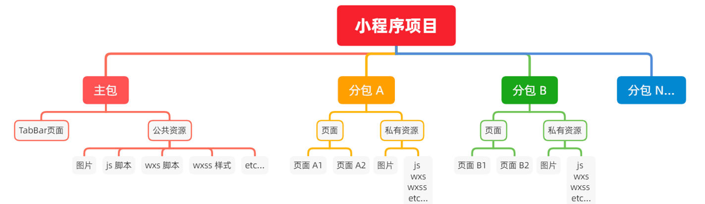 - 分包:只包含和当前分包有关的页面和私有资源