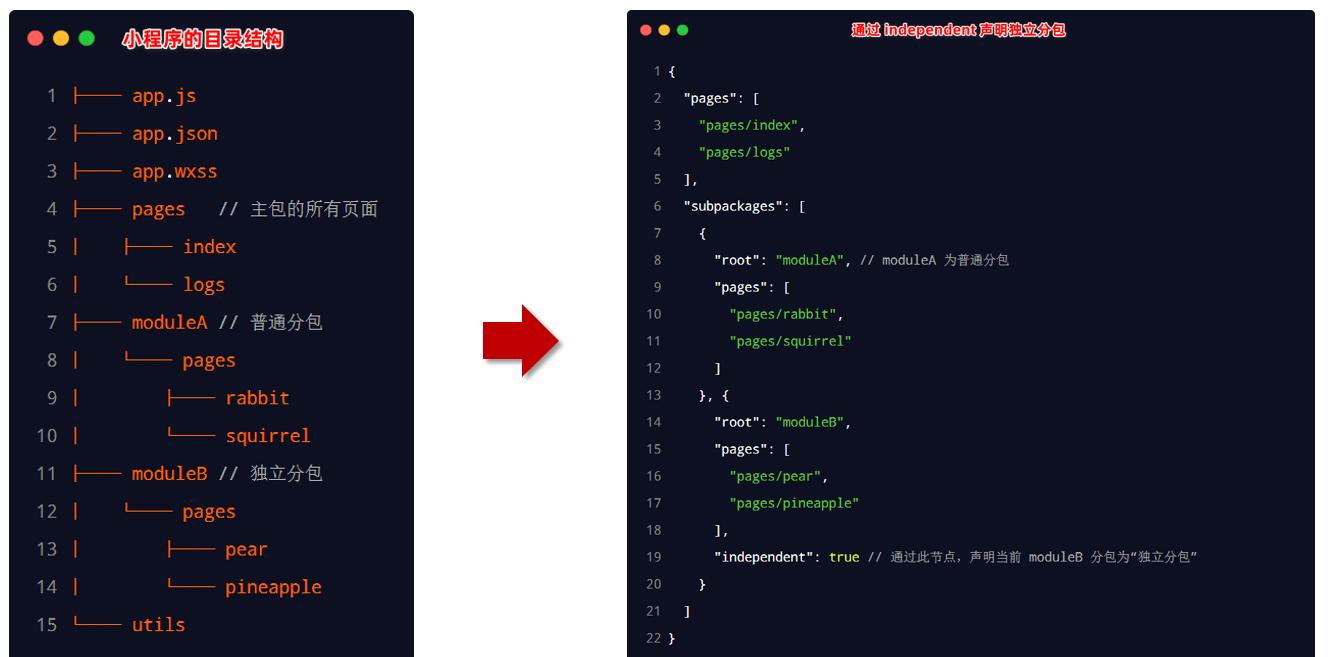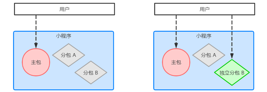 - 而独立分包不依赖主包即可运行,可以很大程度上提升分包页面的启动速度