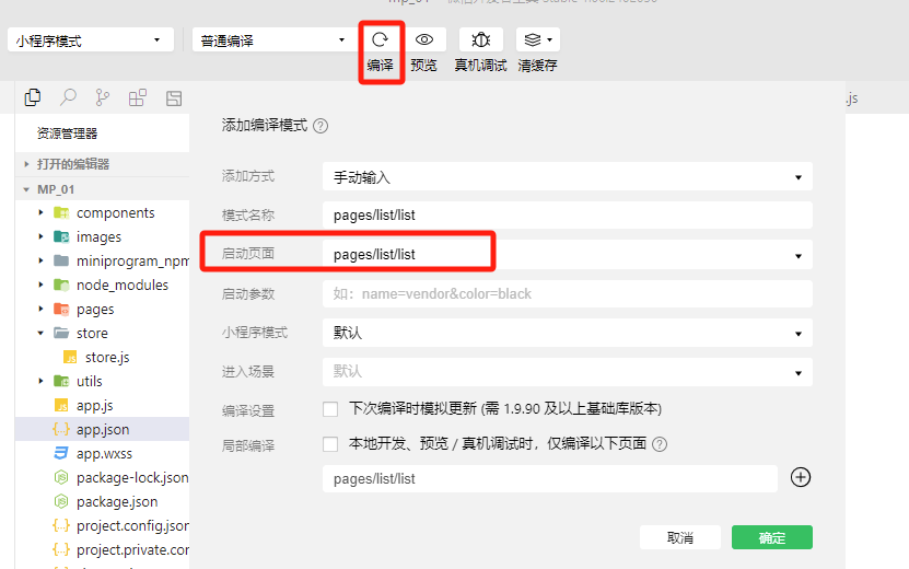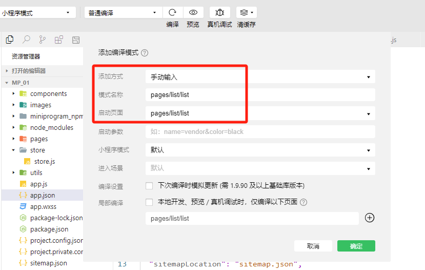 - 修改 app.json