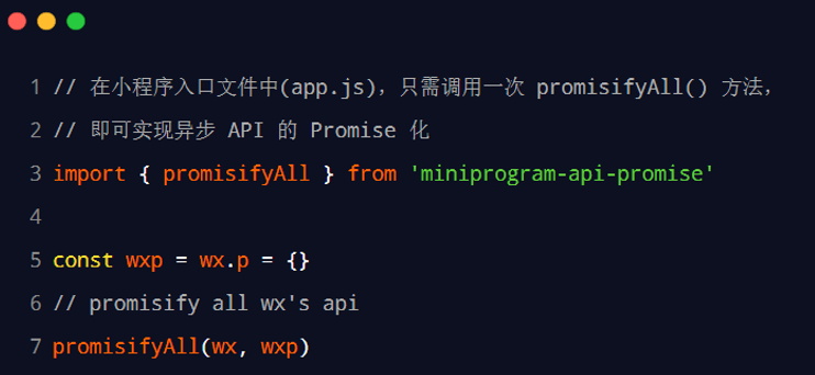 在小程序中,实现 API Promise 化主要依赖于 miniprogram-api-promise 这个第三方的 npm 包。它的安装和使用步骤如下: