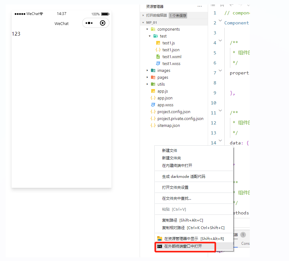 空白处右键,选择"在外部终端窗口中打开"