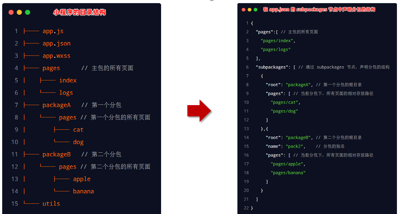 - 小程序会按 subpackages 的配置进行分包,subpackages 之外的目录将被打包到主包中