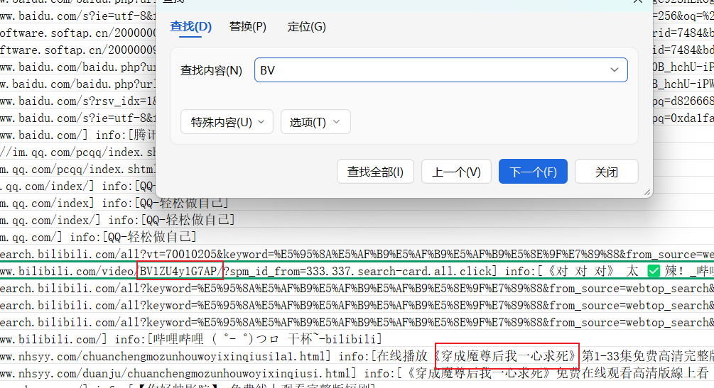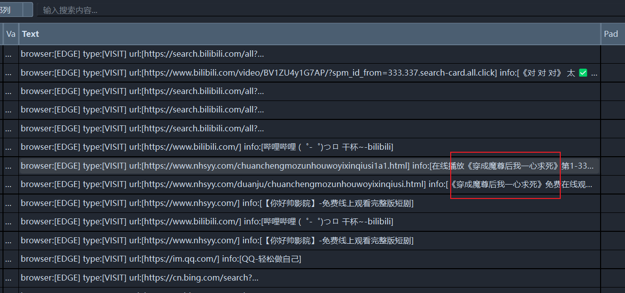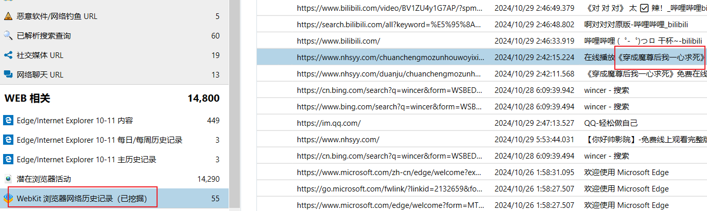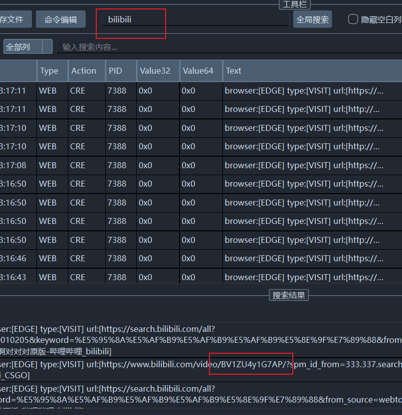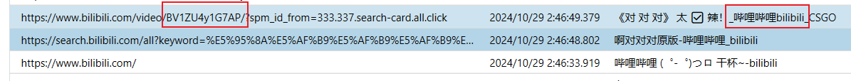 1.加载完成后打开forensic\csv\timeline_web.csv,在其中可以找到符合10字的短剧和BV号