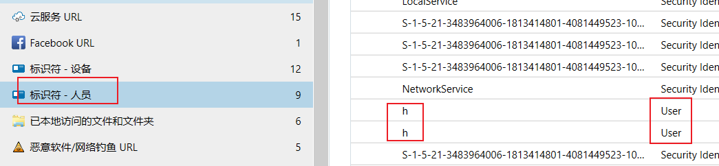 2.在标识符-人员中找到用户h,再结合qq的安装路径可知:c:\Users\h\Documents\Tencent Files