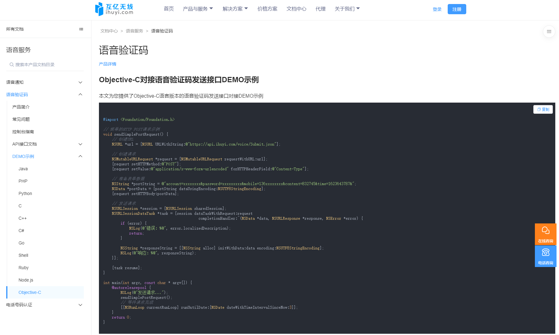 三、Objective-C语音验证码接口API示例代码实战