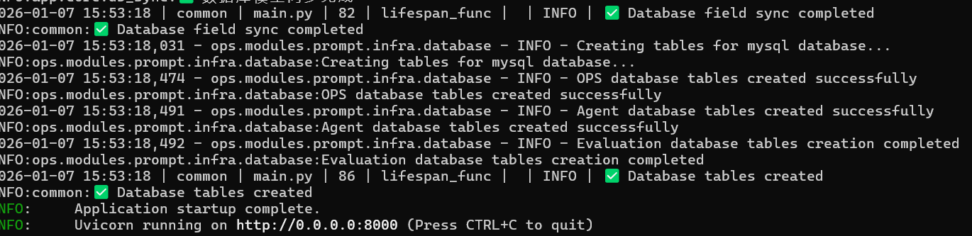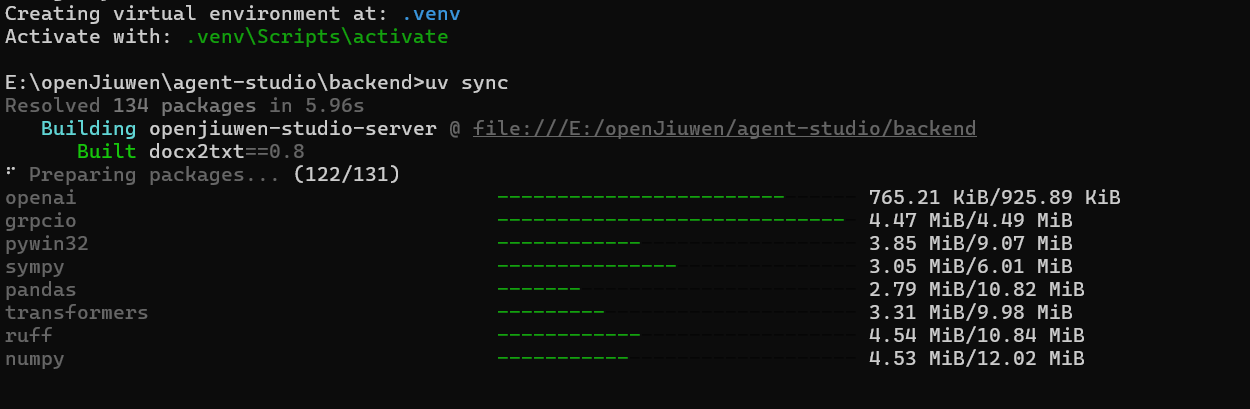 如果部署的为openjiuwen的最新0.1.3版本,则保持 DB_TYPE 为 sqlite 即可直接启动后端服务,无需额外安装或配置。