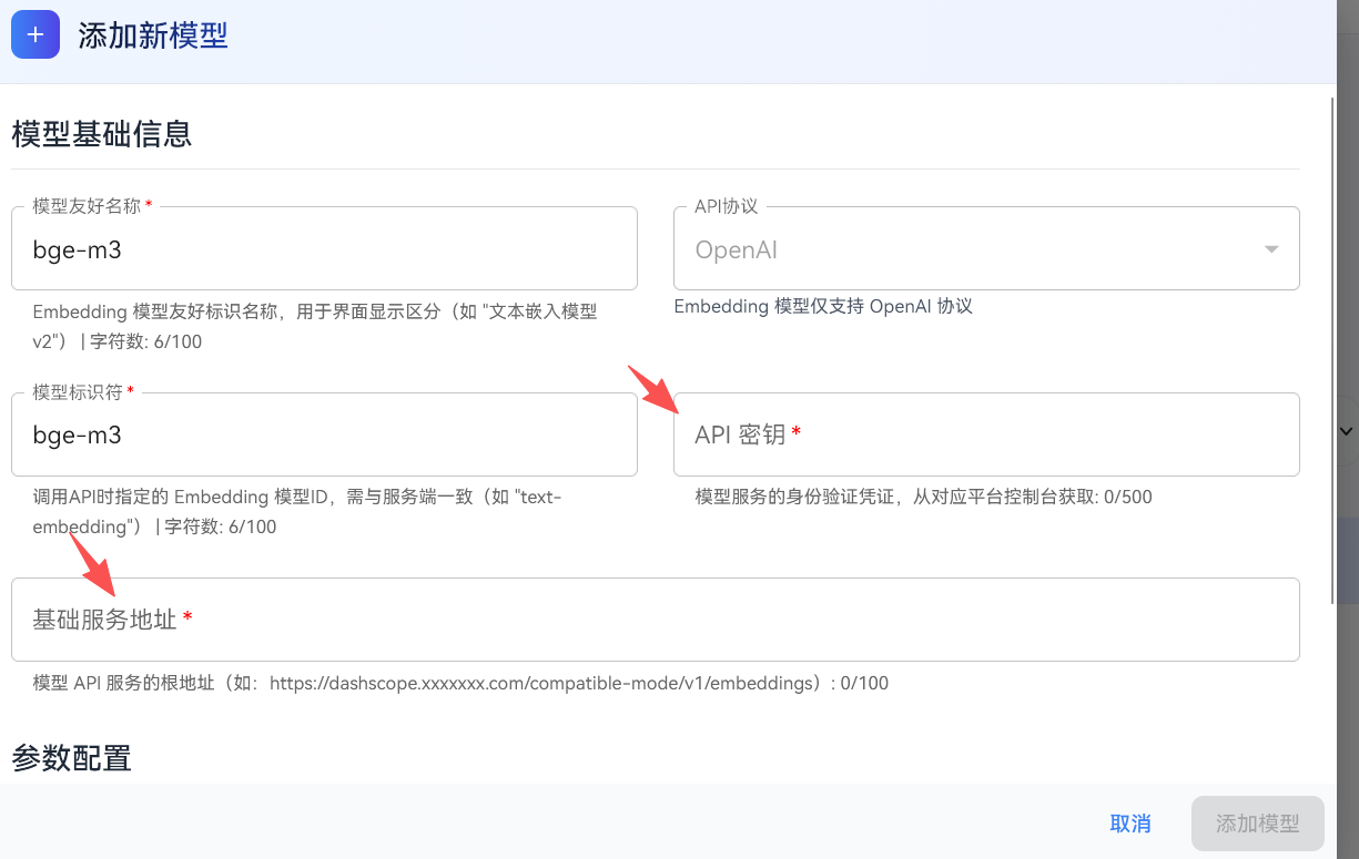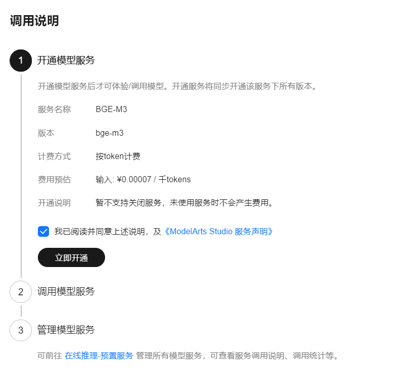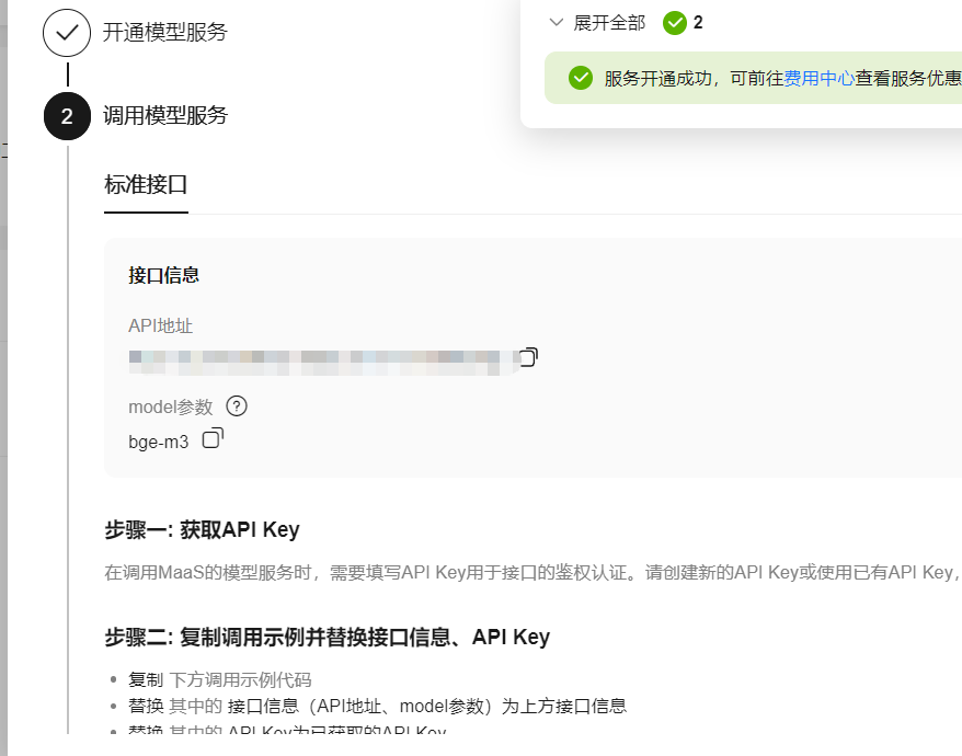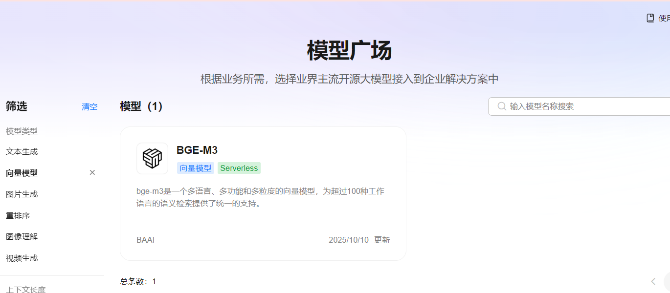 例如我这边选择华为云的bge-m3向量模型
