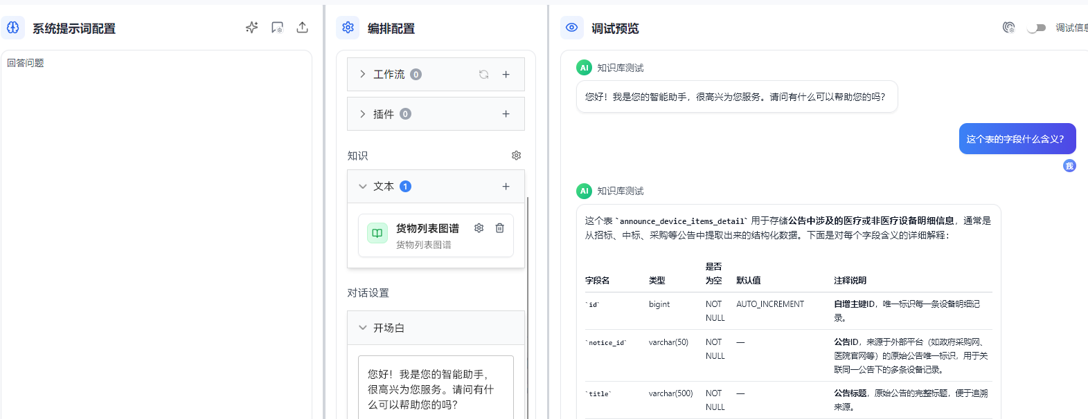输入一个文档里存在的问句,能命中知识并输出。