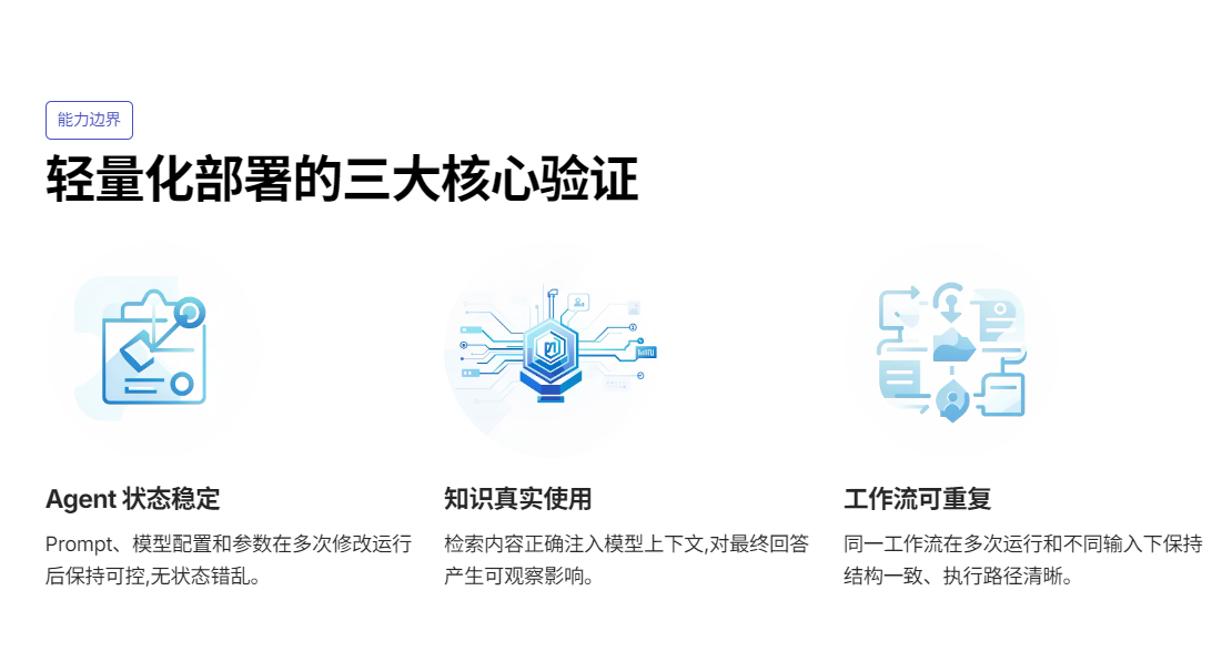 当你在这套轻量化环境下,把 Agent 的行为跑顺、把知识链路跑通、把 Workflow 的结构想明白之后,再去引入更复杂的组件,往往会发现: