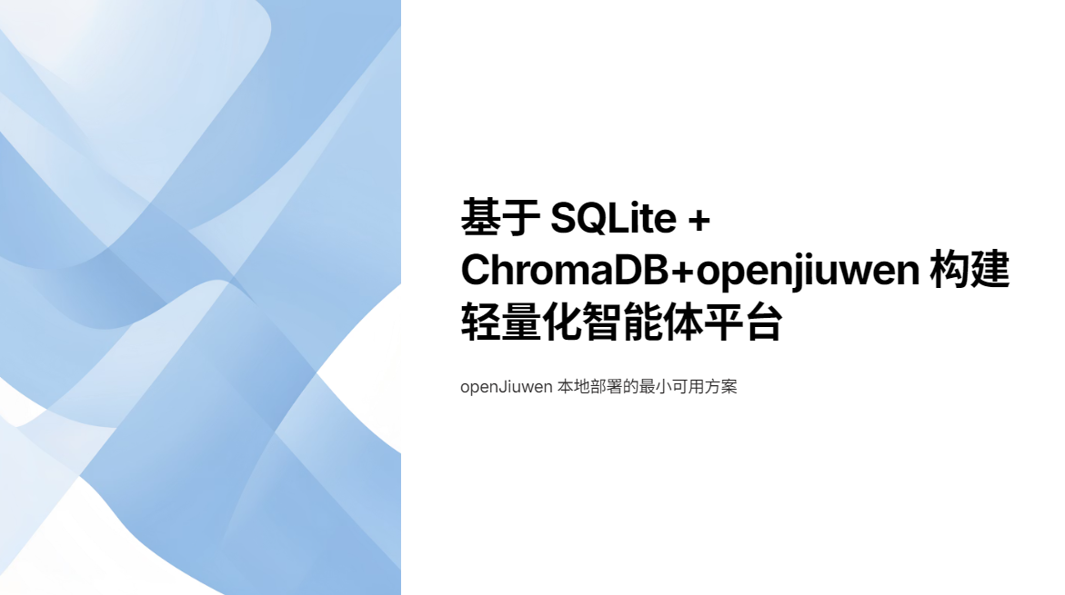 Agentic AI最小可用部署方案:基于 SQLite + ChromaDB 构建 openJiuwen 本地轻量化智能体平台