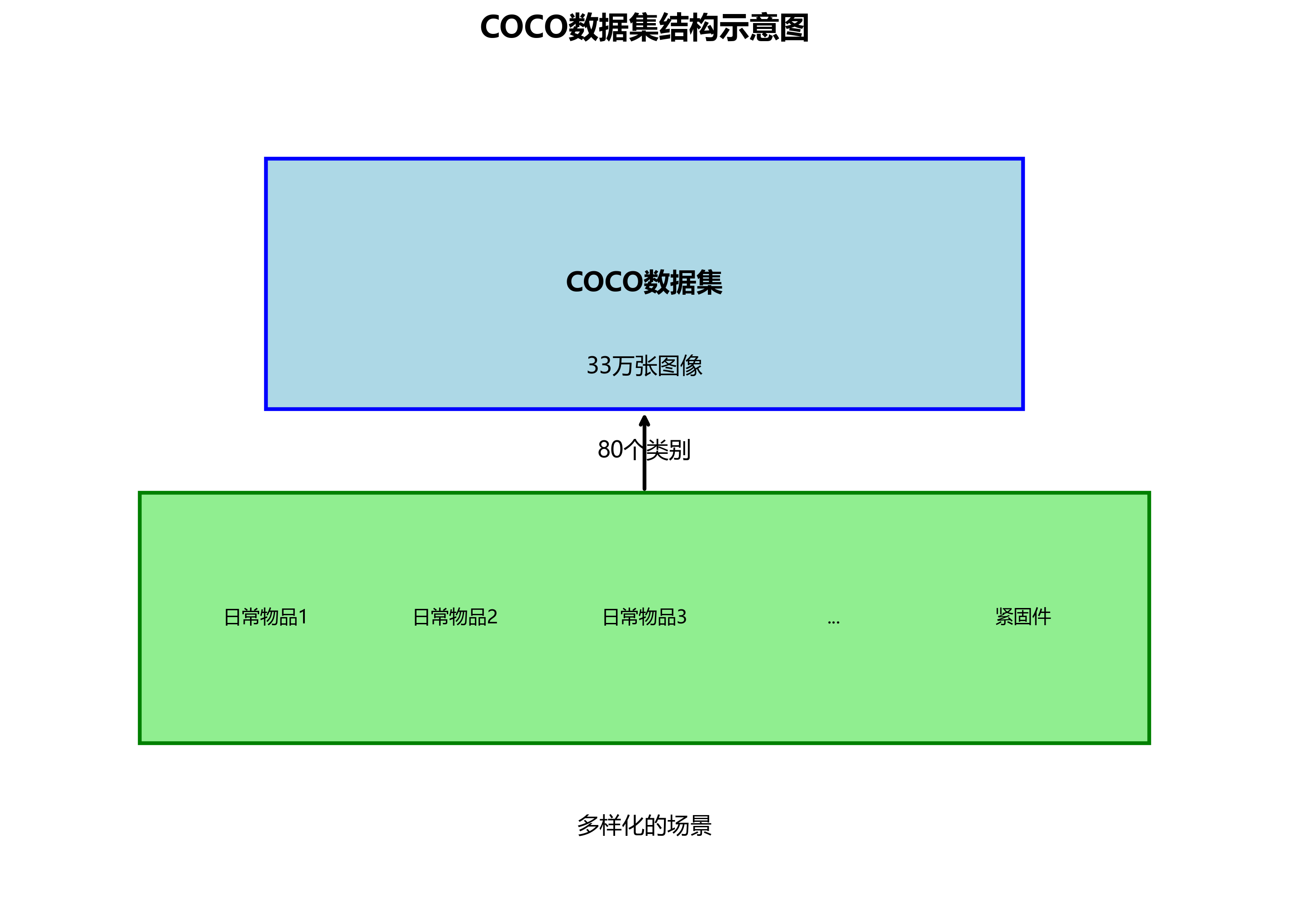 我们使用COCO(Common Objects in Context)数据集进行模型训练,该数据集包含80个类别的日常物品,共计33万张图像。虽然COCO数据集不专门针对紧固件,但其丰富的类别和多样化的场景为模型训练提供了良好的基础。