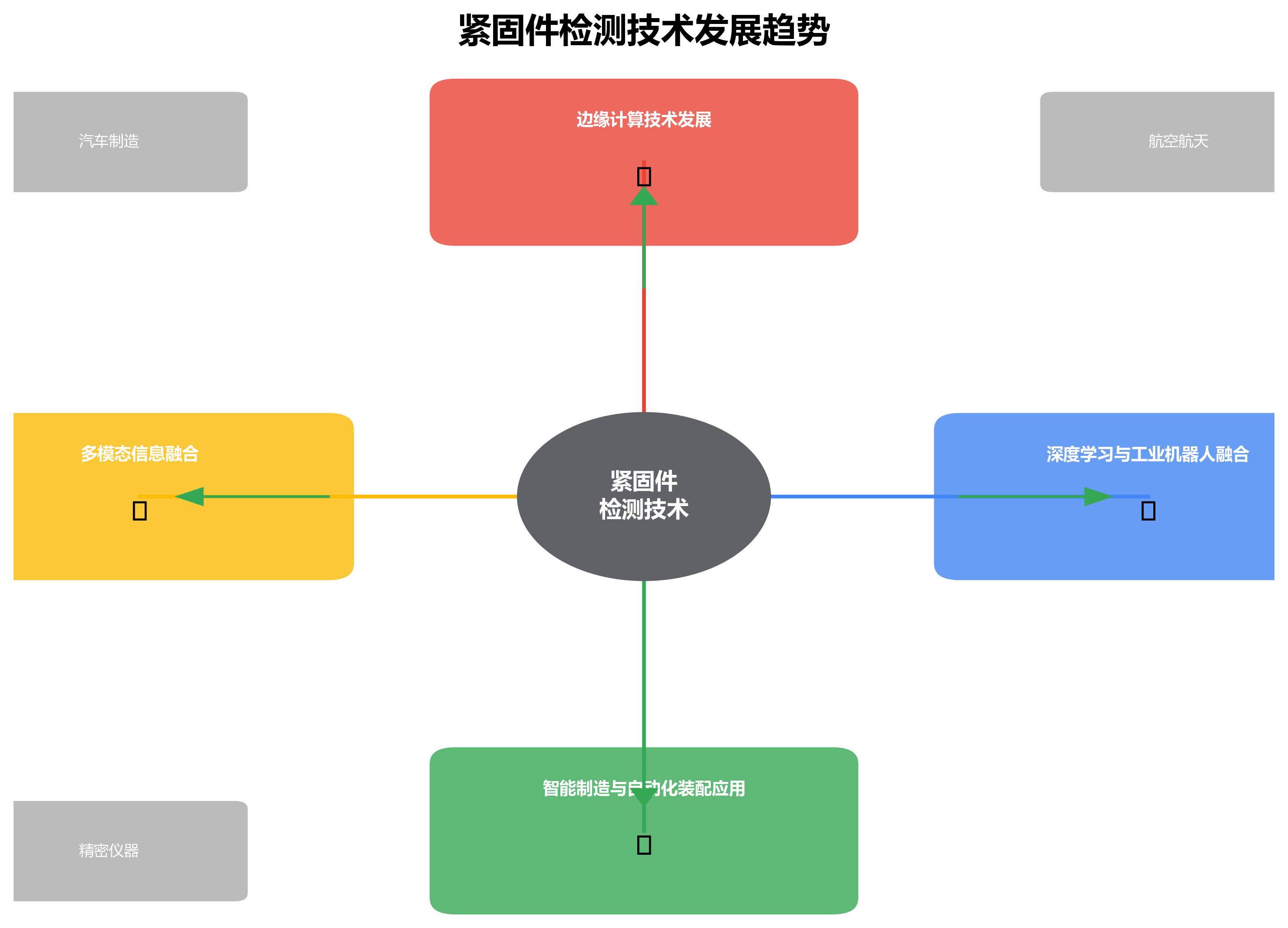 随着工业4.0和智能制造的深入推进,紧固件检测技术在航空航天、汽车制造、精密仪器等领域的应用前景广阔。未来,基于深度学习的智能检测系统将与工业机器人、自动化生产线深度融合,实现从单一检测到智能决策的转变。同时,随着边缘计算技术的发展,检测算法将向实时化、轻量化方向发展,满足工业现场对检测速度和效率的高要求。此外,多模态信息融合将成为重要趋势,结合视觉、红外、声学等多种传感器信息,提高检测系统的可靠性和适应性。总之,紧固件检测技术将在智能制造和自动化装配中发挥越来越重要的作用,为提高产品质量和生产效率提供有力支持。