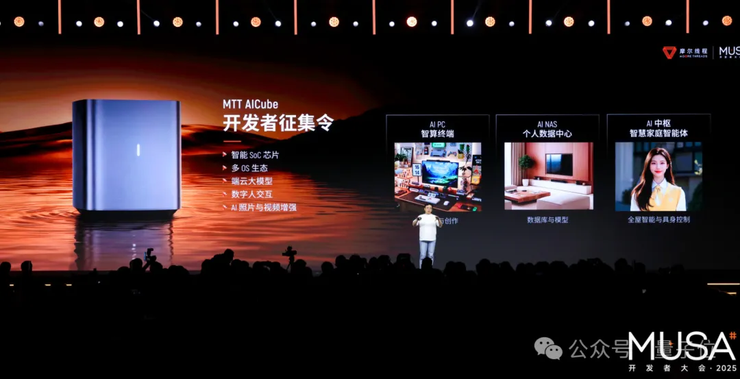 - 以 MTT AIBOOK、AICube 等硬件产品为载体,为开发者提供随时随地可接入的算力平台,降低开发门槛。