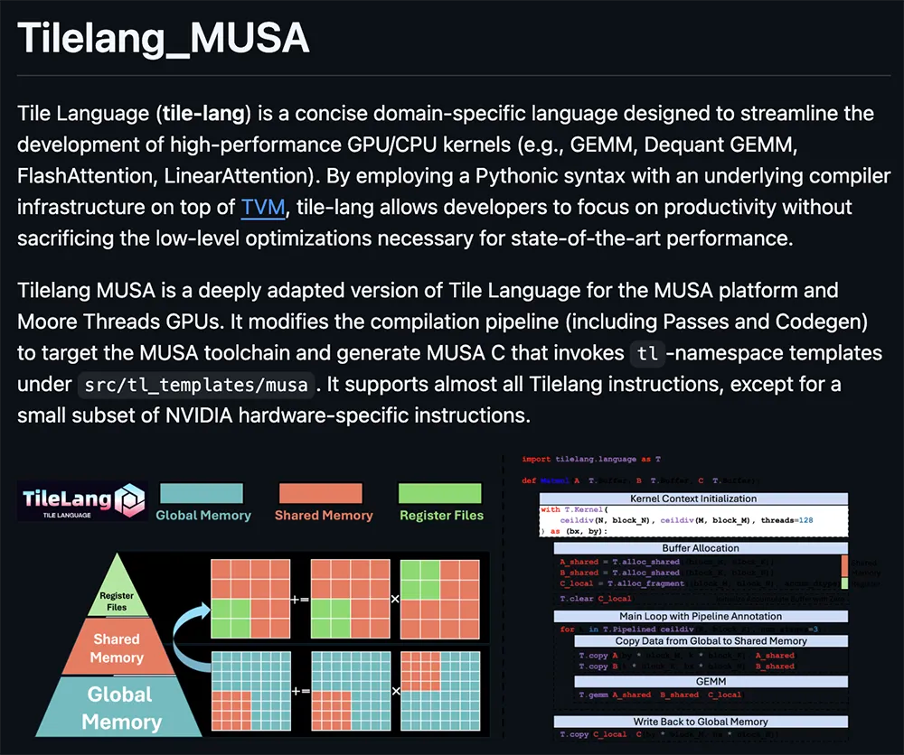 - GitHub - MooreThreads/tilelang_musa: Domain-specific language designed to streamline the development of high-performance GPU/CPU/Accelerators kernels